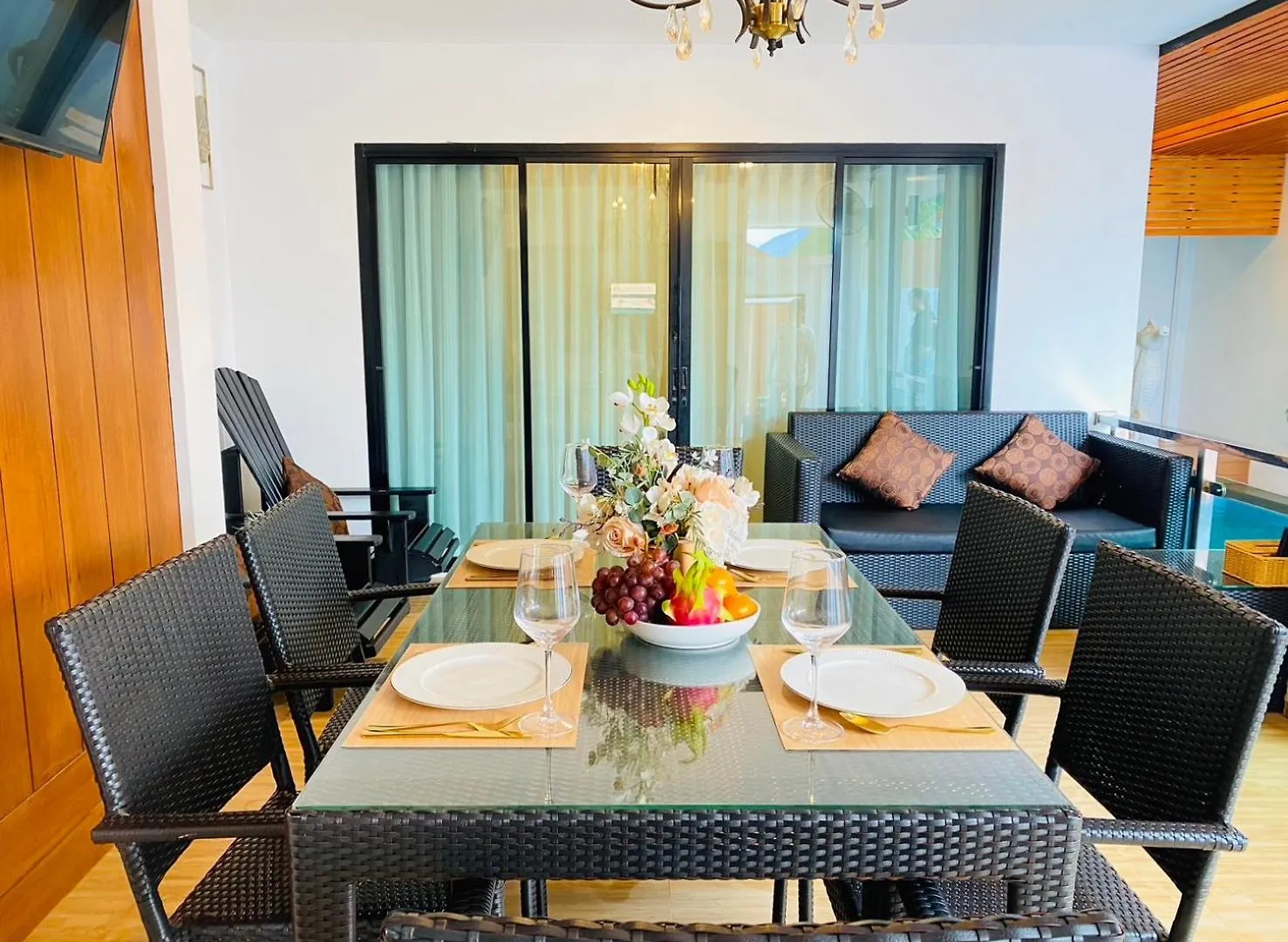 This Nai Yang property is equipped with a toaster, an oven, and a stovetop for self-catering in an outdoor dining area.